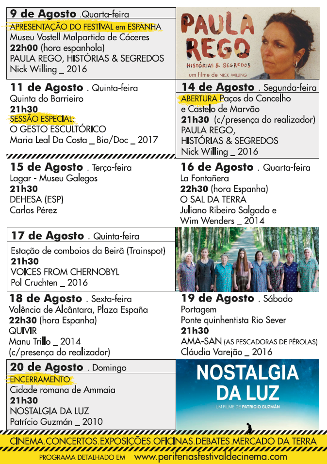 A Associação Cultural Periferias (Portugal) e a Associação Gato Pardo (Espanha) organizam mais uma edição do Festival Internacional de Cinema de Marvão e Valência de Alcântara, entre os dias 14 e 20 de agosto de 2017. Pelo quinto ano consecutivo, colocam de pé um evento que pretende levar o cinema junto das populações dos dois lados da fronteira, num esforço para criar novos públicos e estimular vivências culturais diferenciadoras.